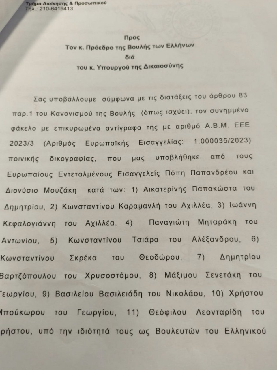 Σύμφωνα με πληροφορίες, οι 11 βουλευτές της ΝΔ που περιλαμβάνονται στη νέα δικογραφία για τον ΟΠΕΚΕΠΕ και για τους οποίους ζητείται η άρση ασυλίας είναι οι εξής: