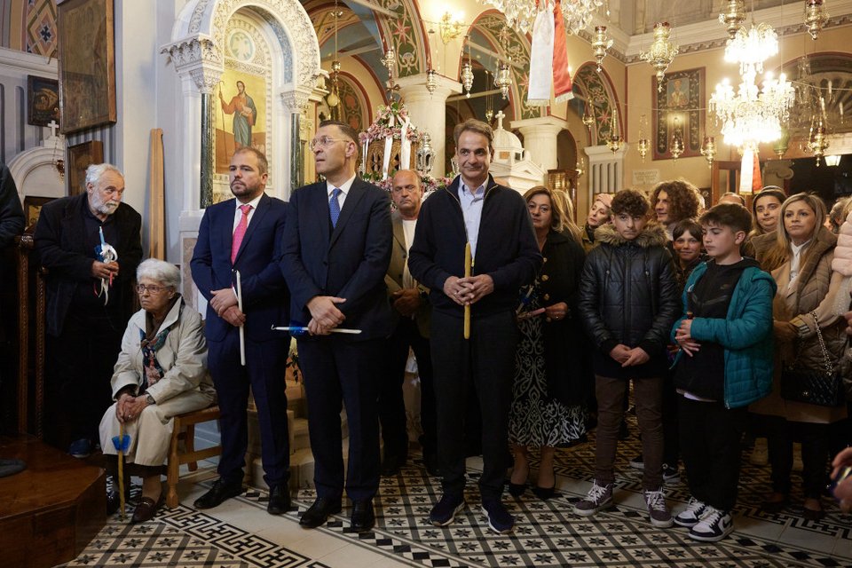 Φωτογραφίες από την Ακολουθία της Αναστάσεως στον Πύργο της Τήνου που παρακολούθησε ο Κυριάκος Μητσοτάκης με τη σύζυγό του
