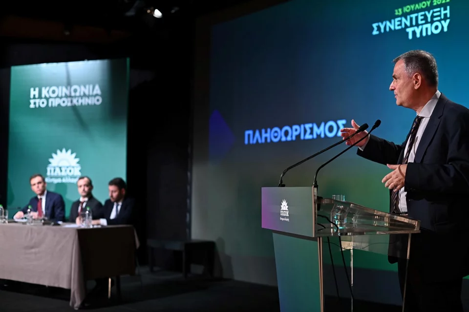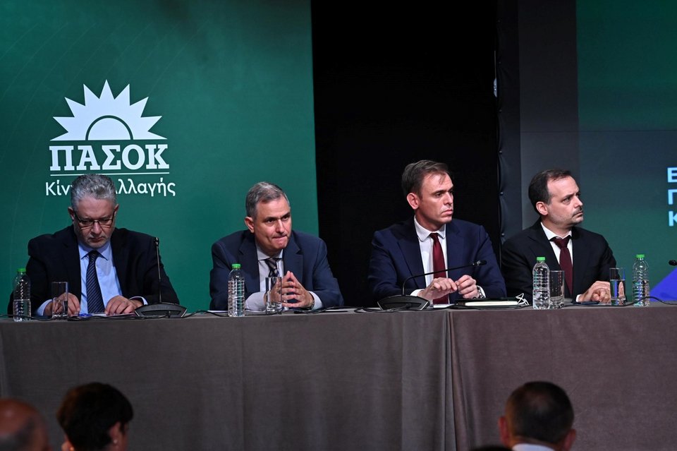 Ο αρχηγός του ΠΑΣΟΚ είχε δίπλα του τον Σύμβουλο επί Οικονομικών Θεμάτων της Κοινοβουλευτικής Ομάδας Ηλία Κικίλια, τον Καθηγητή και Τομεάρχη Ενέργειας Χάρη Δούκα και τον Πρώην Υπουργό Οικονομικών και μέλος του Πολιτικού Συμβουλίου Φίλιππο Σαχινίδη.