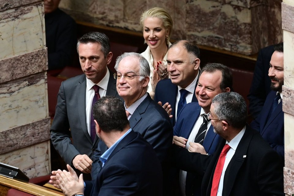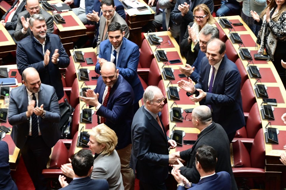 Όρθιοι οι βουλευτές της ΝΔ χειροκρότησαν για αρκετά λεπτά τον μέχρι πρότινος Πρόεδρο της Βουλής των Ελλήνων.