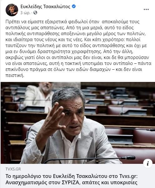Το απόσπασμα του άρθρου του Ευκλείδη Τσακαλώτου