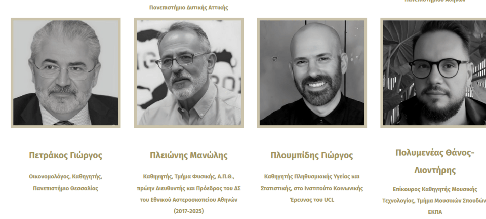 - ΜΑΝΩΛΗΣ ΠΛΕΙΩΝΗΣ: Καθηγητής Παρατηρησιακής Αστρονομίας και Κοσμολογίας, Τμήμα Φυσικής, Α.Π.Θ., πρώην Διευθυντής και Πρόεδρος του ΔΣ του Εθνικού Αστεροσκοπείου Αθηνών (2017-2025)