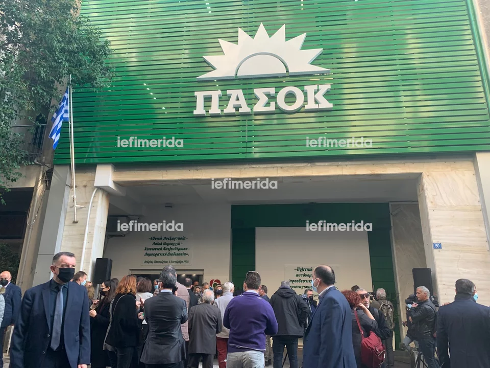Τα αποκαλυπτήρια της ανανεωμένης πρόσοψης στα γραφεία του ΠΑΣΟΚ στη Χ. Τρικούπη έγιναν παρουσία υποψηφίων αρχηγών του ΚΙΝΑΛ και στελεχών του κόμματος.