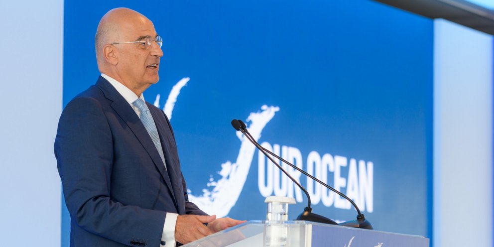 Στην αρχή της ομιλίας του, ο υπουργός Εξωτερικών έδωσε έμφαση στη σημασία της διοργάνωσης από την Ελλάδα, το 2024, της 9ης Διεθνούς Διάσκεψης «Our Ocean Conference». «Είναι ιδιαίτερη τιμή για τη χώρα μας η ανάληψη, το 2024, της 9ης Διεθνούς Διάσκεψης "Our Ocean Conference", μια πρωτοβουλία που ξεκίνησε το 2014 από τον τότε Αμερικανό υπουργό Εξωτερικών και νυν ειδικό απεσταλμένο του Προέδρου των ΗΠΑ για το Κλίμα, Τζον Κέρι. Είναι μια προσπάθεια που επιδιώκει να προστατεύσει την καρδιά του οικοσυστήματος που μας διατηρεί στη ζωή, τη θάλασσα, τους ωκεανούς» επισήμανε χαρακτηριστικά.