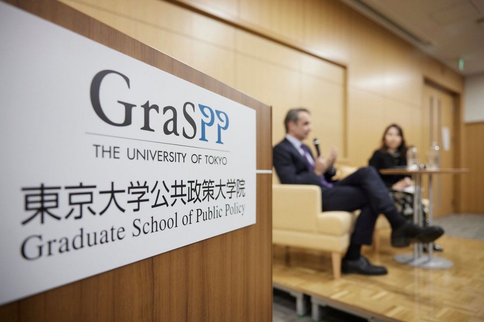 Ο πρωθυπουργός Κυριάκος Μητσοτάκης ήταν ο ομιλητής σε εκδήλωση στο Πανεπιστήμιο του Τόκιο στην Ιαπωνία που διοργάνωσε η σχολή Δημόσιας Πολιτικής για μεταπτυχιακές και διδακτορικές σπουδές.