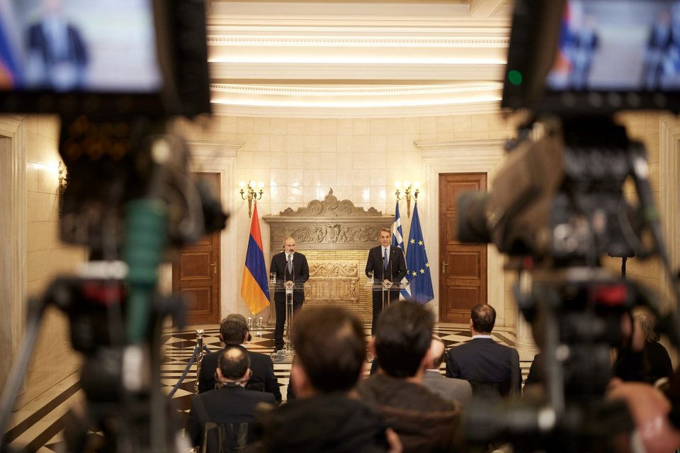 Σε κοινές δηλώσεις προχώρησαν o πρωθυπουργός Κυριάκος Μητσοτάκης με τον πρωθυπουργό της Αρμενίας Νikol Pashinyan μετά τη συνάντησή τους στο Μέγαρο Μαξίμου.
