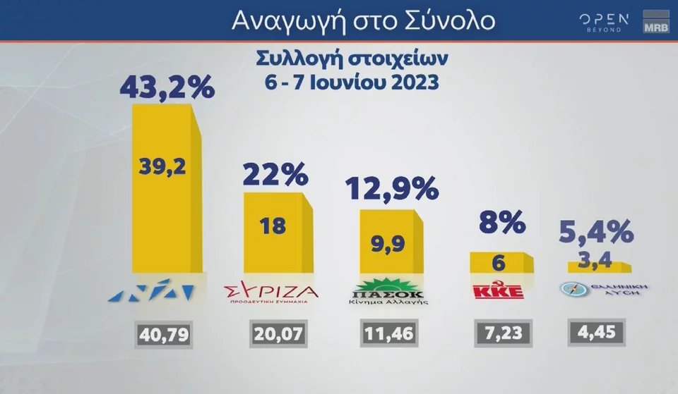 Οι πρώτες σφυγμομετρήσεις έγιναν από τις Metron Analysis και GPO και δείχνουν ισχυρή αυτοδυναμία της ΝΔ, που κυμαίνεται από 42,5% και φτάνει έως και το 43,8%.