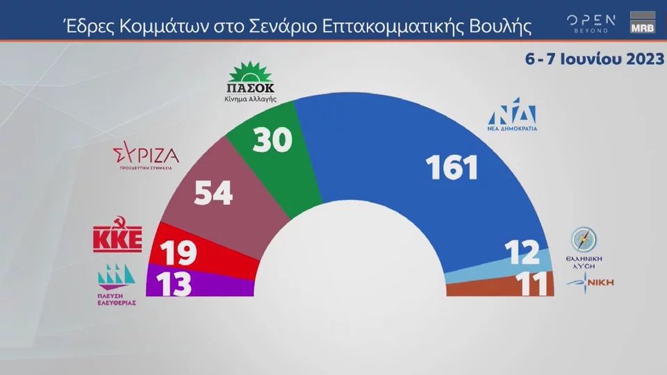 MRB: Κατανομή εδρών σε επτακομματική Βουλή