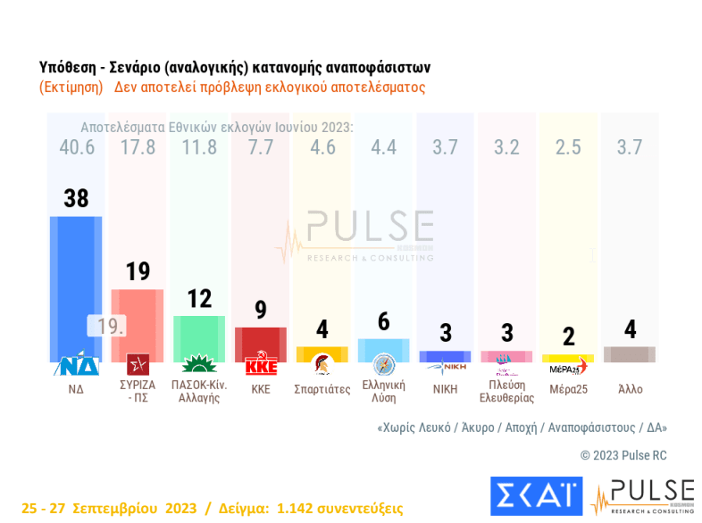 Δημοσκόπηση Pulse: Με 38% κυρίαρχη η ΝΔ -«Υπάρχει θέμα διάσπασης» λένε 6 στους 10 ψηφοφόροι του ΣΥΡΙΖΑ