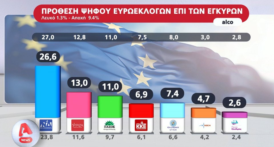 Alco: Εκτίμηση ψήφου ευρωεκλογών