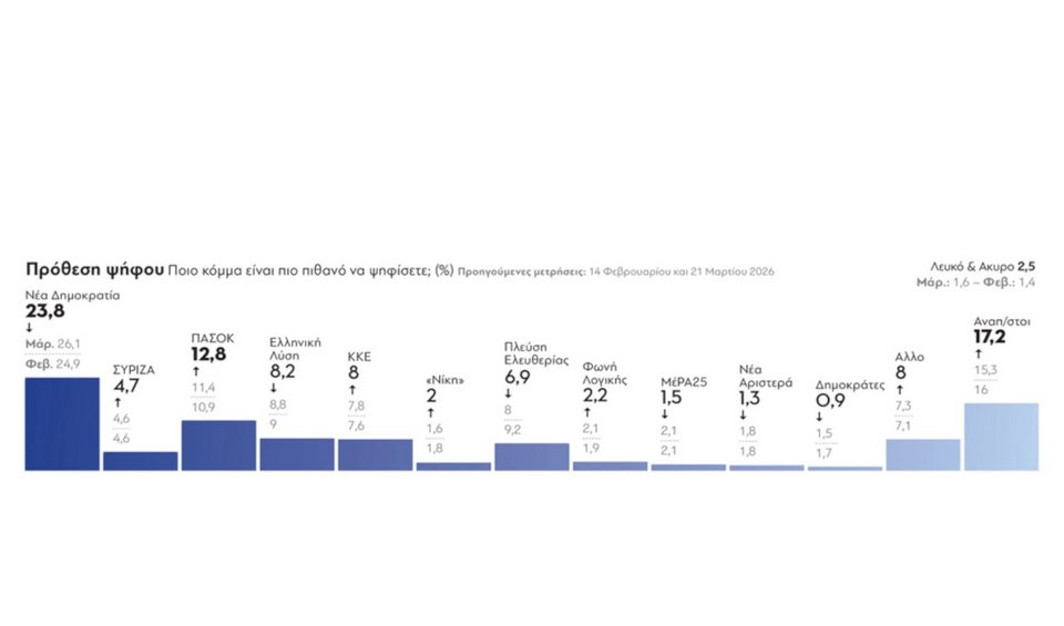 - Νέα ∆ηµοκρατία 23,8 (Μάρ. 26,1 Φεβ. 24,9)
