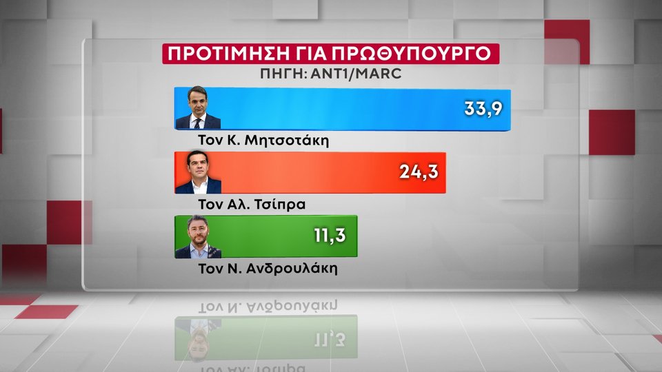 Δημοσκόπηση Marc: Πρώτος ο Μητσοτάκης στην προτίμηση για πρωθυπουργό -Ο Τσίπρας έχει προβάδισμα έναντι του Ανδρουλάκη