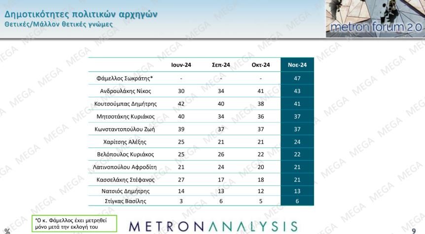 Metron Analysis: Δημοφιλέστερος πολιτικός αρχηγός ο Φάμελλος