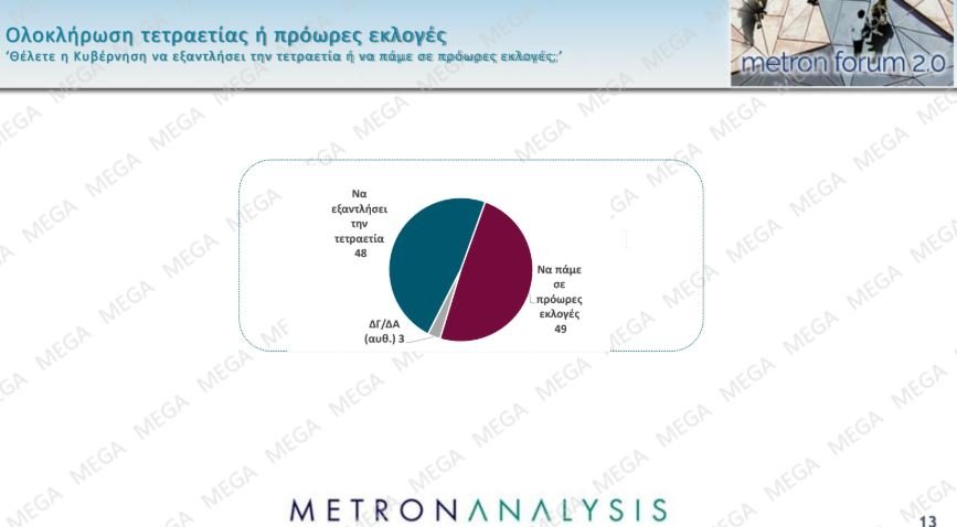 Δημοσκόπηση Metron: Διχασμένοι για εκλογές «τώρα ή στο τέλος της τετραετίας»