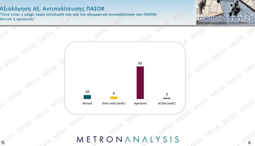 Όσον αφορά το ΠΑΣΟΚ, 8 στους 10 κρίνουν αρνητικά την αξιωματική αντιπολίτευση αλλά και τον ίδιο τον Νίκο Ανδρουλάκη.