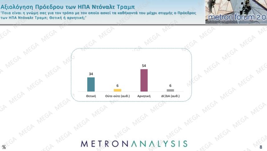Σε αξιολόγηση του... Τραμπ, αρνητικά βλέπει το έργο του το 54% και το 34% θετικά.