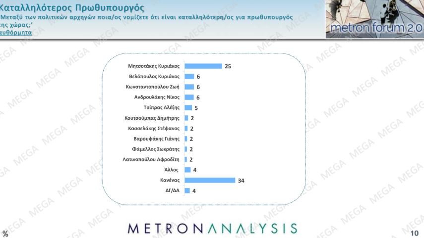 Δημοσκόπηση Metron: Καταλληλότερος πρωθυπουργός ο Μητσοτάκης