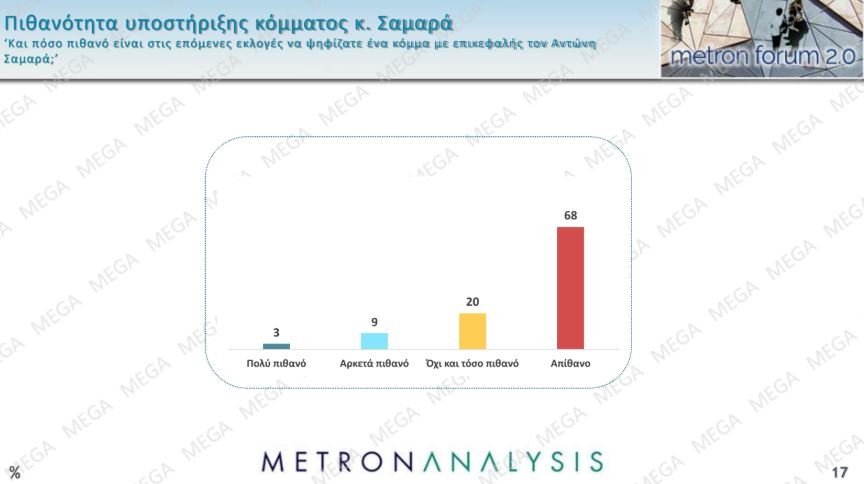 Αντίθετα, στο 12% συνολικά είναι η πιθανότητα να ψηφίσουν ένα κόμμα του Αντώνη Σαμαρά.