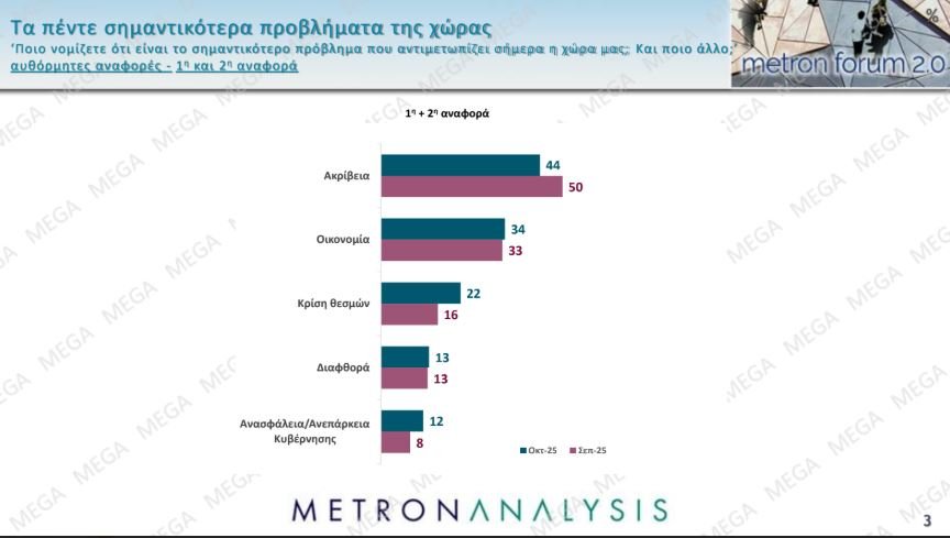 Δημοσκόπηση Metron: Η ακρίβεια πρώτο πρόβλημα των πολιτών
