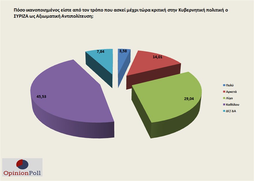 Σε ό,τι αφορά τον ΣΥΡΙΖΑ οι πολίτες έχουν μόνο 17,5% θετικές γνώμες για τον τρόπο που ασκεί αντιπολίτευση.
