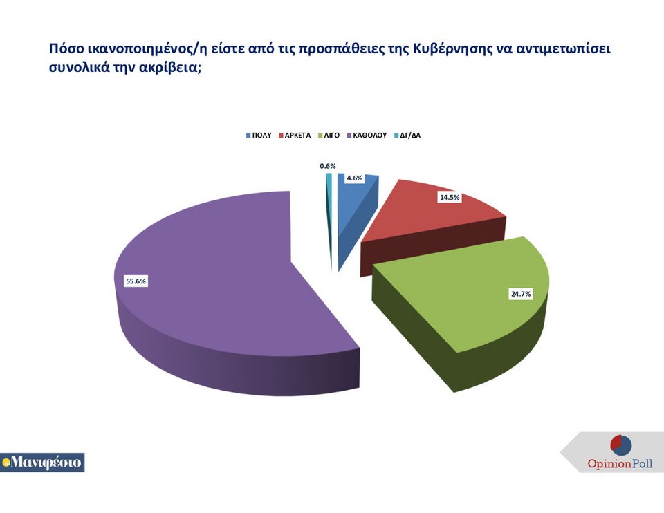 Πόσο ικανοποιημένος/η είστε από τις προσπάθειες της κυβέρνησης να αντιμετωπίσει συνολικά την ακρίβεια;