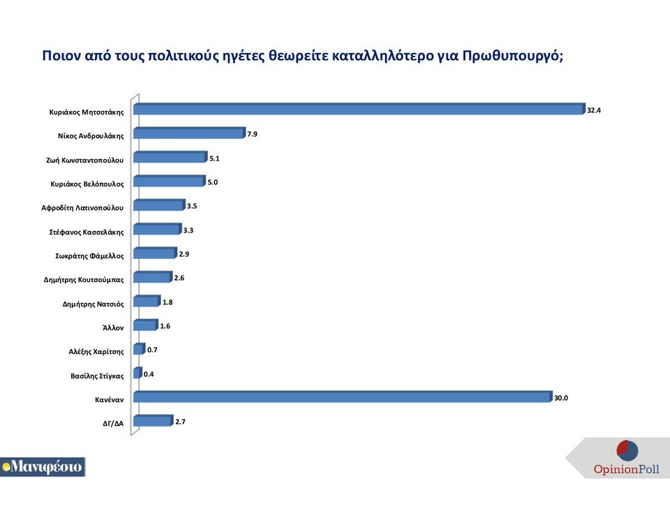 Ποιον από τους πολιτικούς ηγέτες θεωρείτε καταλληλότερο για πρωθυπουργό;