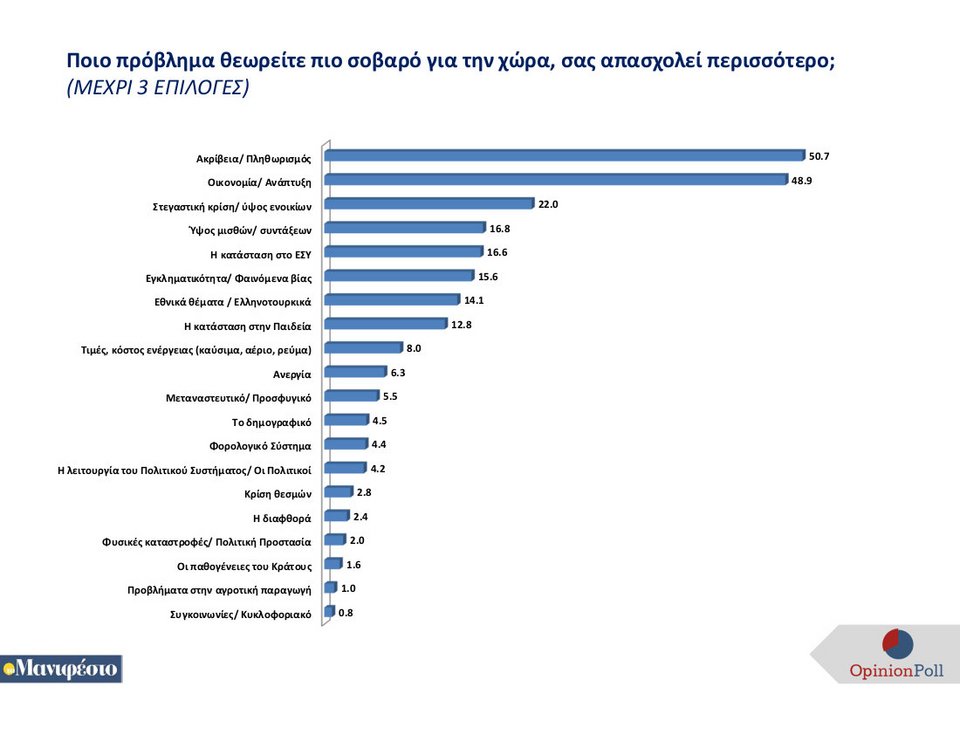 Ποιο πρόβλημα θεωρείτε πιο σοβαρό για τη χώρα, σας απασχολεί περισσότερο;