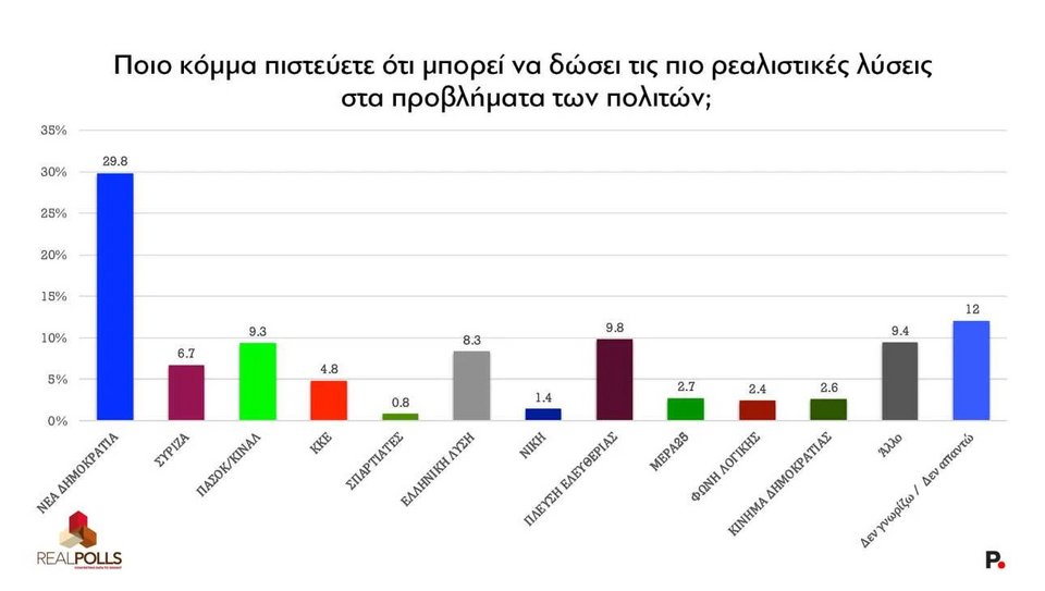 Σταθερά πρώτη παραμένει η ΝΔ και στη νέα δημοσκόπηση της Real Polls, που διεξήχθη για λογαριασμό του Protagon.