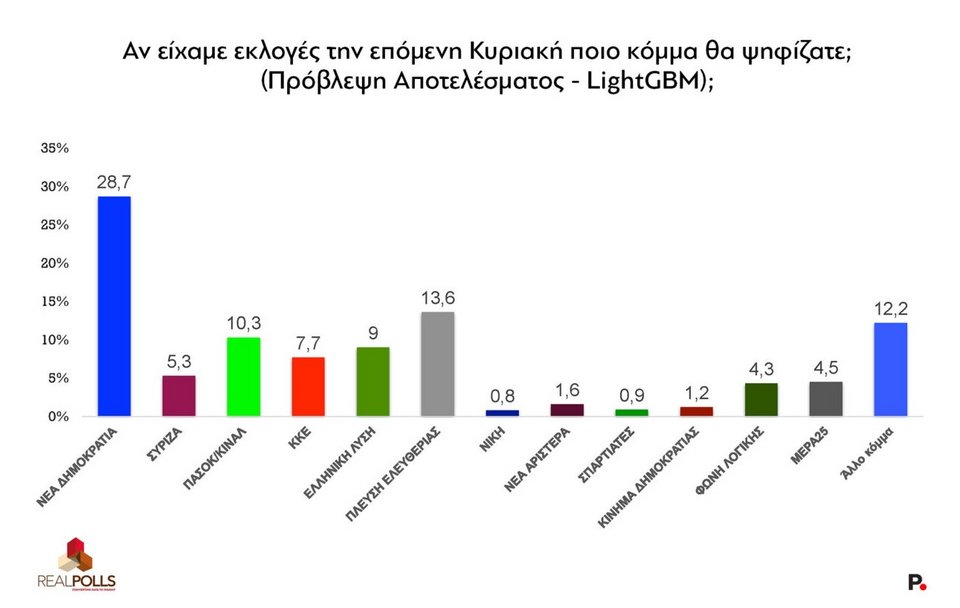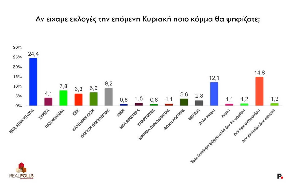 Real Polls: Πρόθεση ψήφου σε υποθετικό σενάριο αλλαγής αρχηγών στα κόμματα
