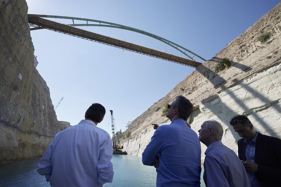 Ο πρωθυπουργός είχε τη δυνατότητα να διασχίσει με πλωτό μέσο τη Διώρυγα προκειμένου να ενημερωθεί για τα έργα, τα οποία παραδίδονται προσωρινά τη Δευτέρα 4 Ιουλίου, καθώς ολοκληρώνεται η πρώτη φάση των παρεμβάσεων μετά τις μεγάλες καταπτώσεις χωμάτινων όγκων που σημειώθηκαν τον Νοέμβριο του 2020, τον Ιανουάριο και τον Φεβρουάριο του 2021.