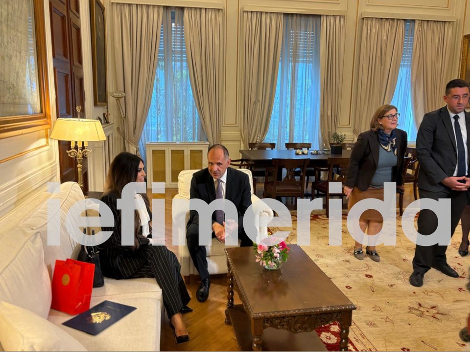 Μαζί της είχε και μια κόκκινη τσάντα με δώρο που προοριζόταν για τον ΥΠΕΞ Γιώργο Γεραπετρίτη.