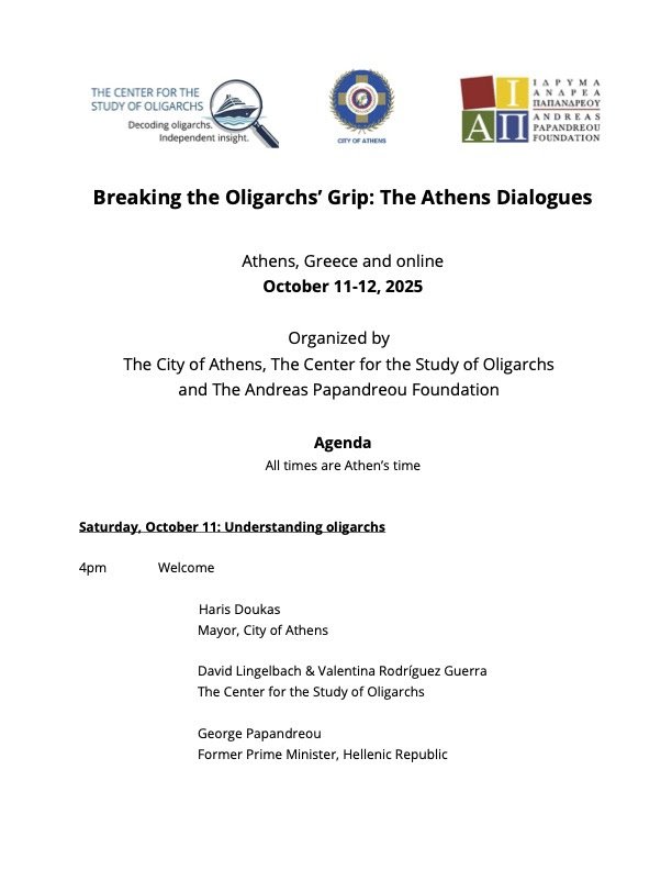 Ο Δήμος Αθηναίων και το Ίδρυμα Ανδρέα Παπανδρέου, από κοινού με το «Κέντρο Μελέτης Ολιγαρχών (Center for the Study of Oligarchs), συμμετέχουν σε διεθνές συνέδριο, στις 11 και 12 Οκτωβρίου 2025.