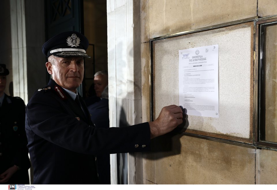 Το Προεδρικό Διάταγμα για τη διάλυση της Βουλής θυροκόλλησε στην ανατολική είσοδο του Μεγάρου, περί τις 20:10, ο φρούραρχος της Βουλής, ταξίαρχος Φώτης Ντουίτσης.