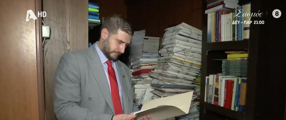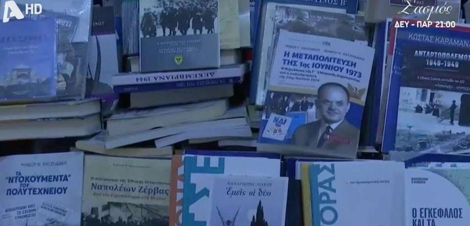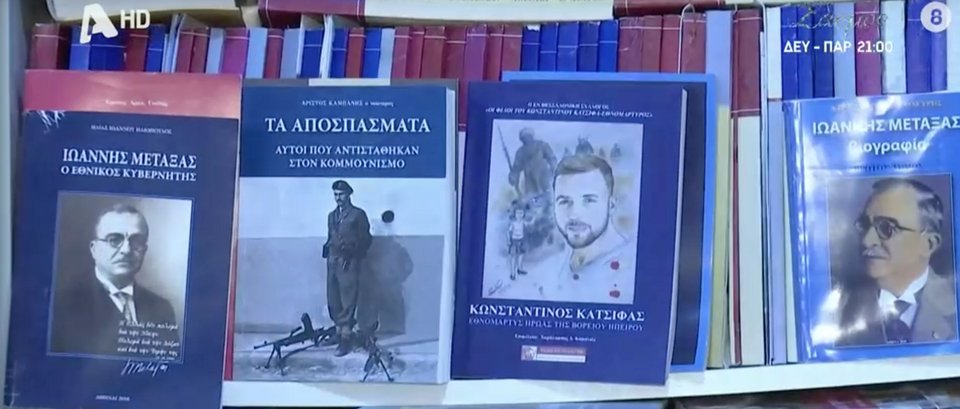 Ο εκπρόσωπος Τύπου του κόμματος των Σπαρτιατών, Χάρης Κατσιβαρδάς, δικηγόρος στο επάγγελμα, υποδέχθηκε στο γραφείο του την κάμερα του T-live, η οποία, ανάμεσα στις στοίβες με τα βιβλία στο γραφείο του και την προθήκη στην είσοδο, κατέγραψε και βιβλία με εξώφυλλο τον δικτάτορα Γεώργιο Παπαδόπουλο, τον αδόλφο Χίτλερ, τη ναζιστική σβάστικα και τον Ιωάννη Μεταξά.