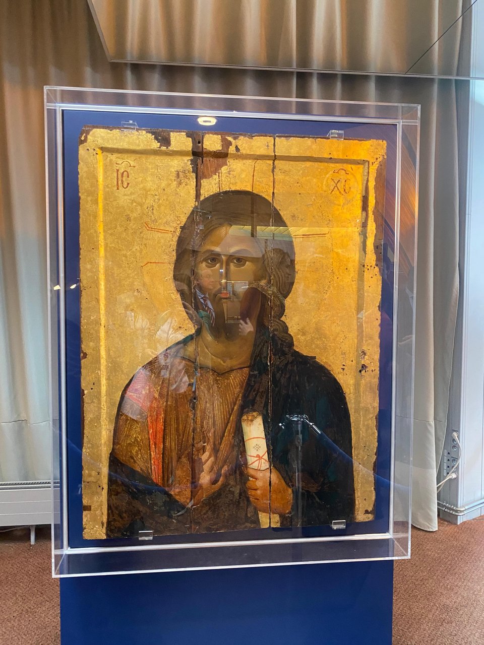Για πρώτη φορά εκτός Αγίου Όρους, στο Στρασβούργο, στο σπίτι της δημοκρατίας, στο Συμβούλιο της Ευρώπης, εκτίθενται δύο σπάνια κειμήλια παγκόσμιας πολιτιστικής κληρονομιάς: η Γεωγραφία του Πτολεμαίου και η Βυζαντινή εικόνα του Χριστού Παντοκράτορος. Και τα δύο έργα του 13ου αιώνα.