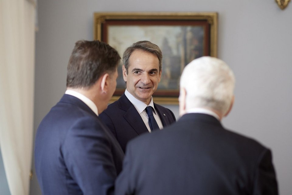 Ο Κυριάκος Μητσοτάκης ενημέρωσε τους συνομιλητές του για τις τελευταίες εξελίξεις στην επιθετική συμπεριφορά και ρητορική της Τουρκίας στην Ανατολική Μεσόγειο και για την αμφισβήτηση ελληνικής κυριαρχίας.