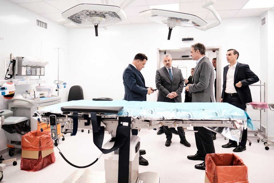Ο Κυριάκος Μητσοτάκης, συνοδευόμενος από τον υπουργό Υγείας Άδωνι Γεωργιάδη και τον υφυπουργό Μάριο Θεμιστοκλέους, είχε την ευκαιρία να δει τις πλήρως ανακαινισμένες, υπερσύγχρονες χειρουργικές αίθουσες και να συνομιλήσει με εργαζόμενους και ασθενείς.