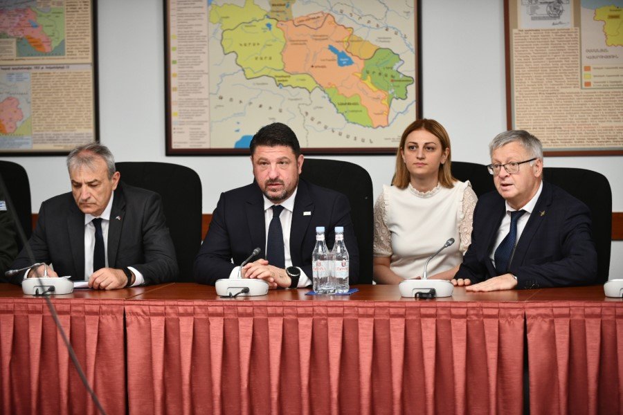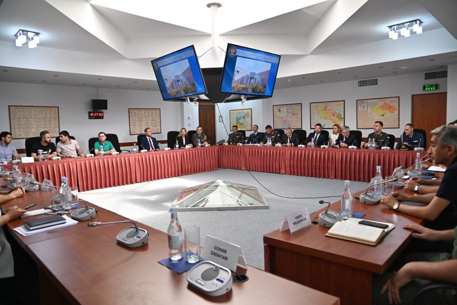 Τέλος, ο υφυπουργός Εθνικής 'Αμυνας μετέβη στις έδρες της Vasgen Sargsyan Military Academy και του National Defense Research University, όπου ενημερώθηκε για την οργάνωση και τα προγράμματα στρατιωτικής και ακαδημαϊκής εκπαίδευσης, περιηγήθηκε στις εγκαταστάσεις τους και ξεναγήθηκε σε στατική έκθεση οπλικών συστημάτων.