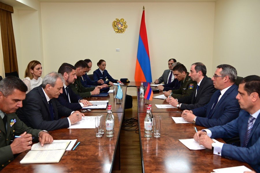 - Με τον ομόλογό του Karen Brutyan, με τον οποίο συζήτησαν εκτενώς θέματα και προοπτικές εμβάθυνσης των διμερών σχέσεων στους τομείς των αμυντικών εξοπλισμών, της αμυντικής βιομηχανίας και διεύρυνσης των προγραμμάτων στρατιωτικής συνεργασίας μεταξύ των Ενόπλων Δυνάμεων των δύο χωρών,