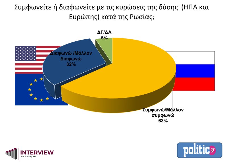 Σύμφωνα με δημοσκόπηση της Interview για λογαριασμό της Politic, ένας στους δύο Έλληνες (51%) τάσσεται υπέρ της ουκρανικής πλευράς.