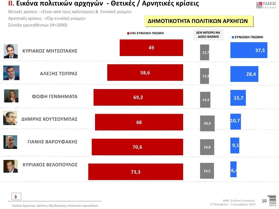 Η δημοτικότητα των πολιτικών αρχηγών: