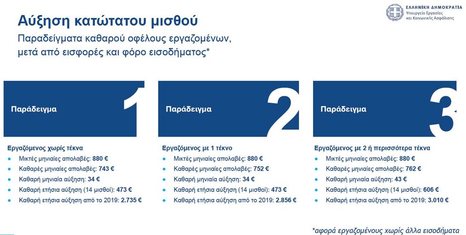 Σε εργαζόμενο με δύο ή περισσότερα παιδιά η καθαρή μηνιαία αύξηση είναι 43€ το χρόνο. Θα λάβει 606 ευρώ περισσότερα σε σχέση με πέρσι.