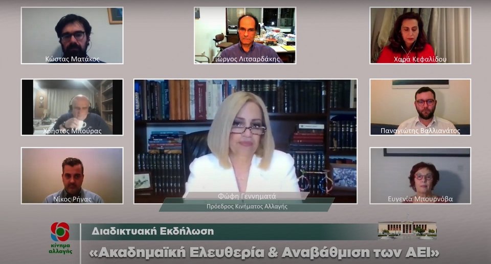 Η πρόεδρος του Κινήματος Αλλαγής Φώφη Γεννηματά σχολίασε στη διαδικτυακή εκδήλωση του κόμματος για τη φύλαξη στα ΑΕΙ, την έξαρση της πανδημίας και τους κυβερνητικούς χειρισμούς.