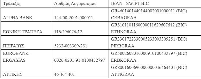 ΤΡΑΠΕΖΑ ΠΕΙΡΑΙΩΣ: 5023 – 032595 - 870, IBAN: GR3801720230005023032595870