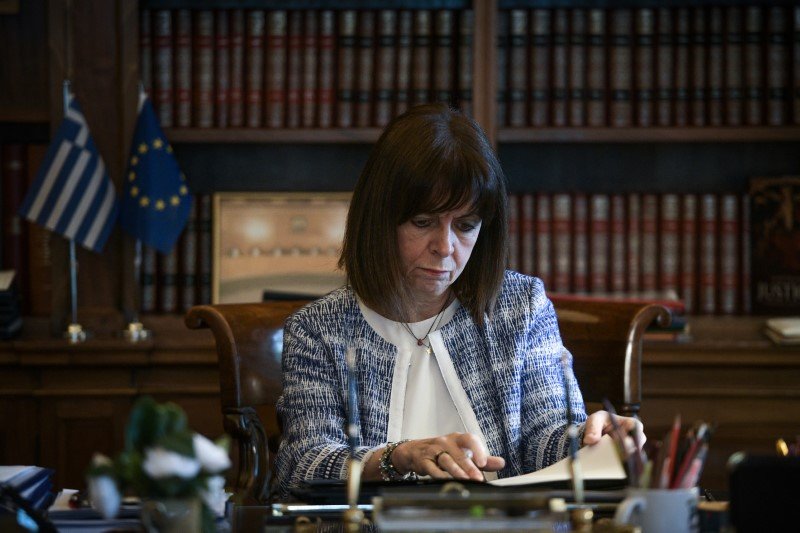 Λίγο πριν συναντηθεί με την υπουργό Παιδείας Νίκη Κεραμέως, η κα Σακελλαροπούλου εργαζόταν στο γραφείο της.