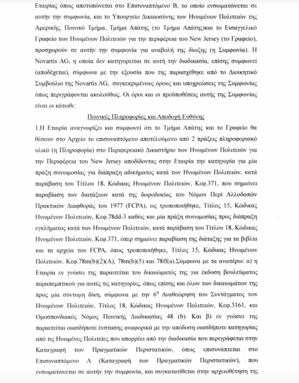 - Δείτε εδώ τα βασικά σημεία συμφωνίας της Novartis με την αμερικανική δικαιοσύνη