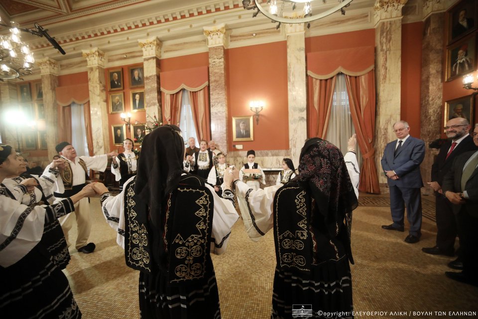 Σε εορταστικό κλίμα το Μέγαρο της Βουλής «πλημμύρισε» σήμερα από παραδοσιακές χριστουγεννιάτικες μελωδίες, κάλαντα, παραδοσιακούς σκοπούς, χορούς και ευχές.