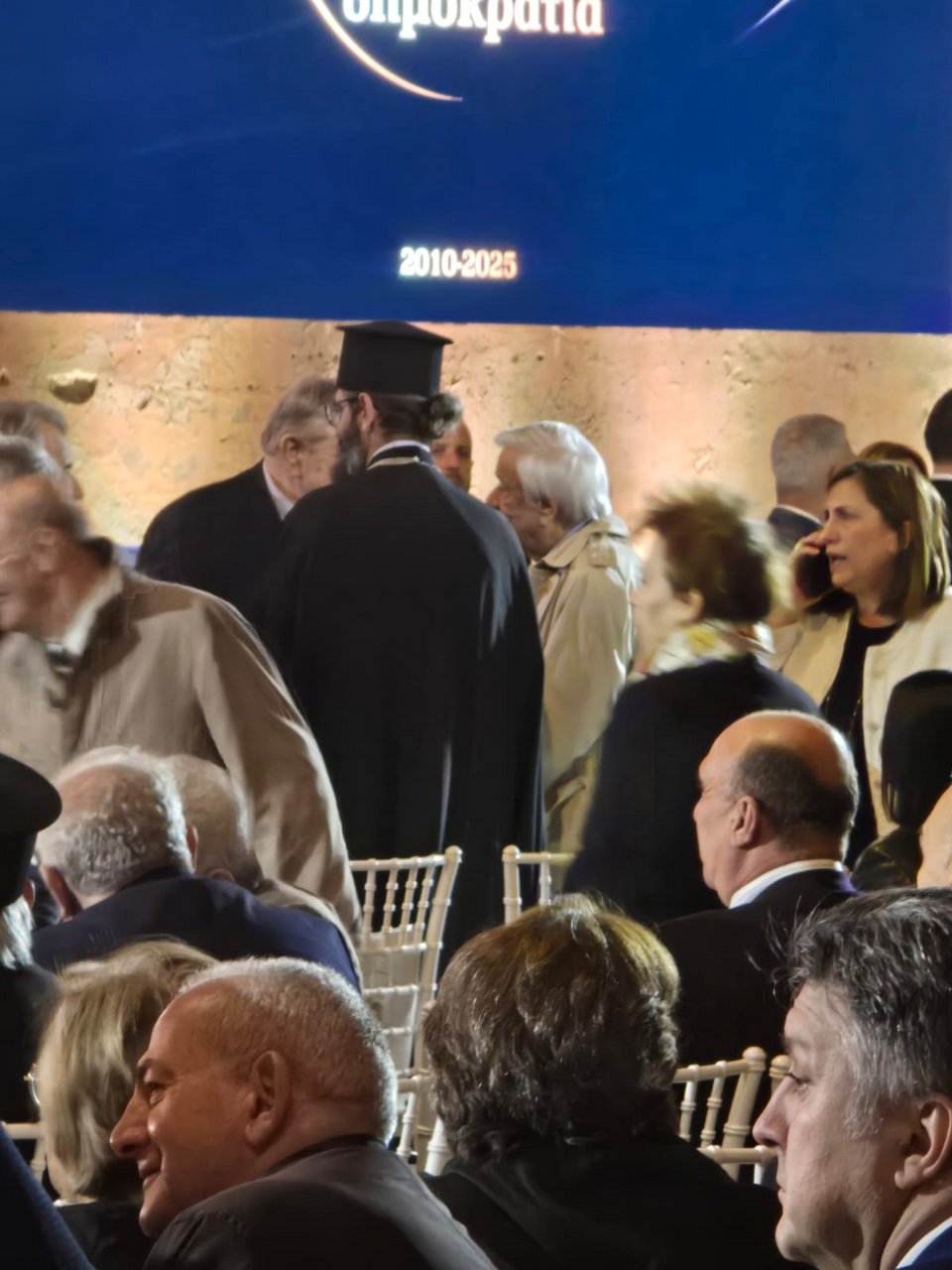 Στο ακροατήριο έχουν καταφθάσει ήδη ετερόκλητοι προσκεκλημένοι: Από τον Αντώνη Σαμαρά και τον Προκόπη Παυλόπουλο μέχρι τον Κώστα Λαλιώτη (που είχε και μια θερμή χειραψία με τον Κ. Καραμανλή) τον Λάκη Λαζόπουλο. και τον Πάνο Καμμένο. Το παρών δίνει και ο υπουργός Άμυνας, Νίκος Δένδιας αλλά και η Αφροδίτη Λατινοπούλου.