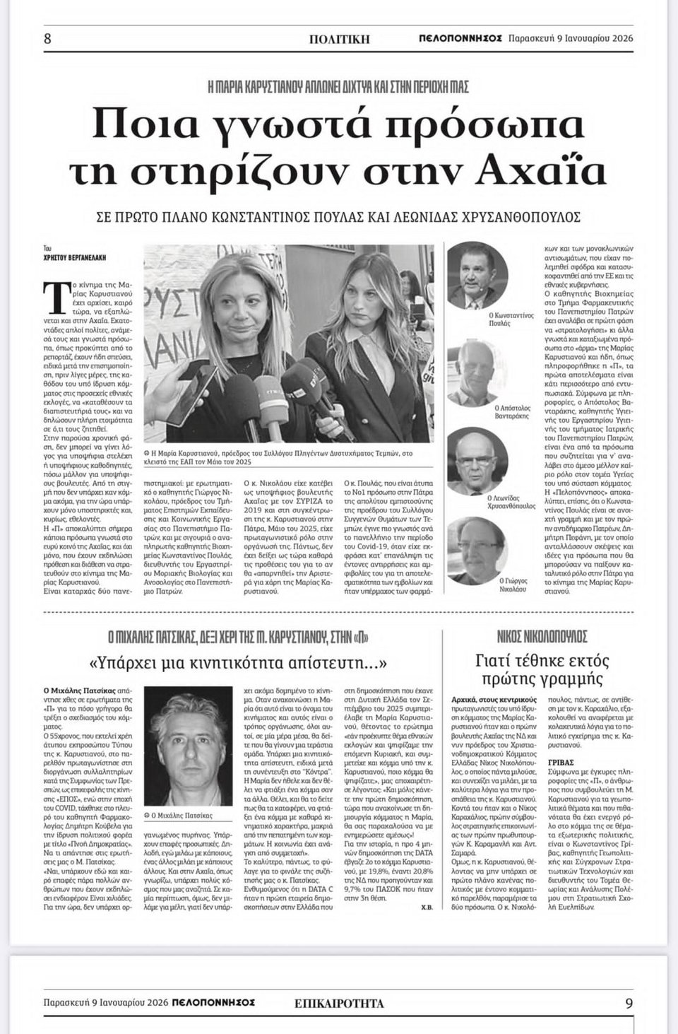 H εφημερίδα «Πελοπόννησος» αναφέρει ποια πρόσωπα στηρίζουν την Καρυστιανού στην Αχαΐα.