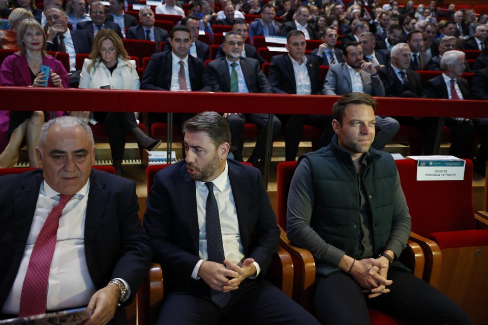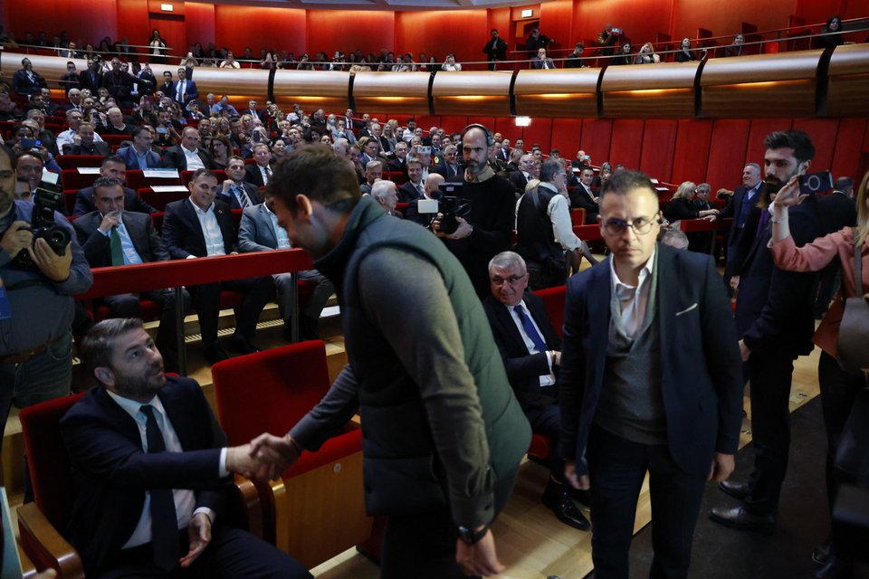 Στην 7η Απονομή των βραβείων «Βιώσιμης - Καινοτόμου & Υπεύθυνης Επιχειρηματικότητας» στο Κέντρο Πολιτισμού Ίδρυμα «Σταύρος Νιάρχος» συναντήθηκαν οι Στέφανος Κασσελάκης και Νίκος Ανδρουλάκης.